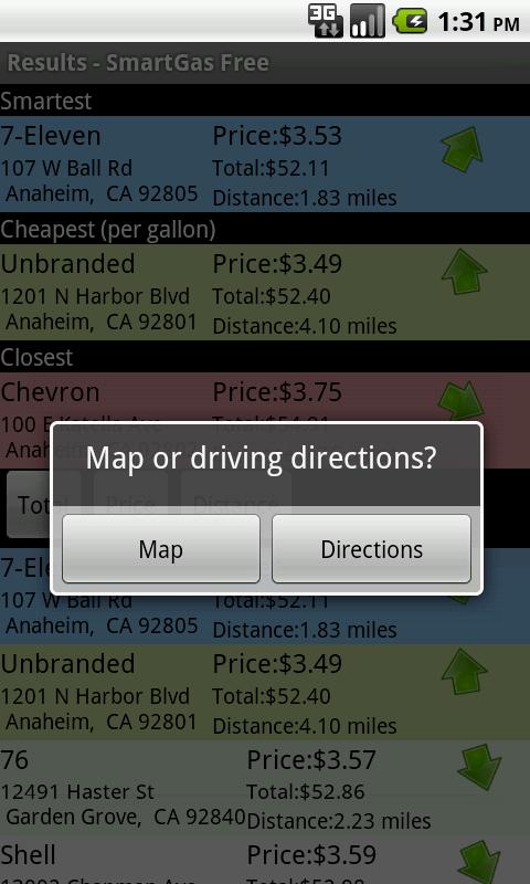 SmartGas also calculates how much time it will take to travel to each station. If you don't have the time, just pick a closer station. It might only cost $1 more to save 5 or 10 minutes, so it may be worth it if you're in a hurry.