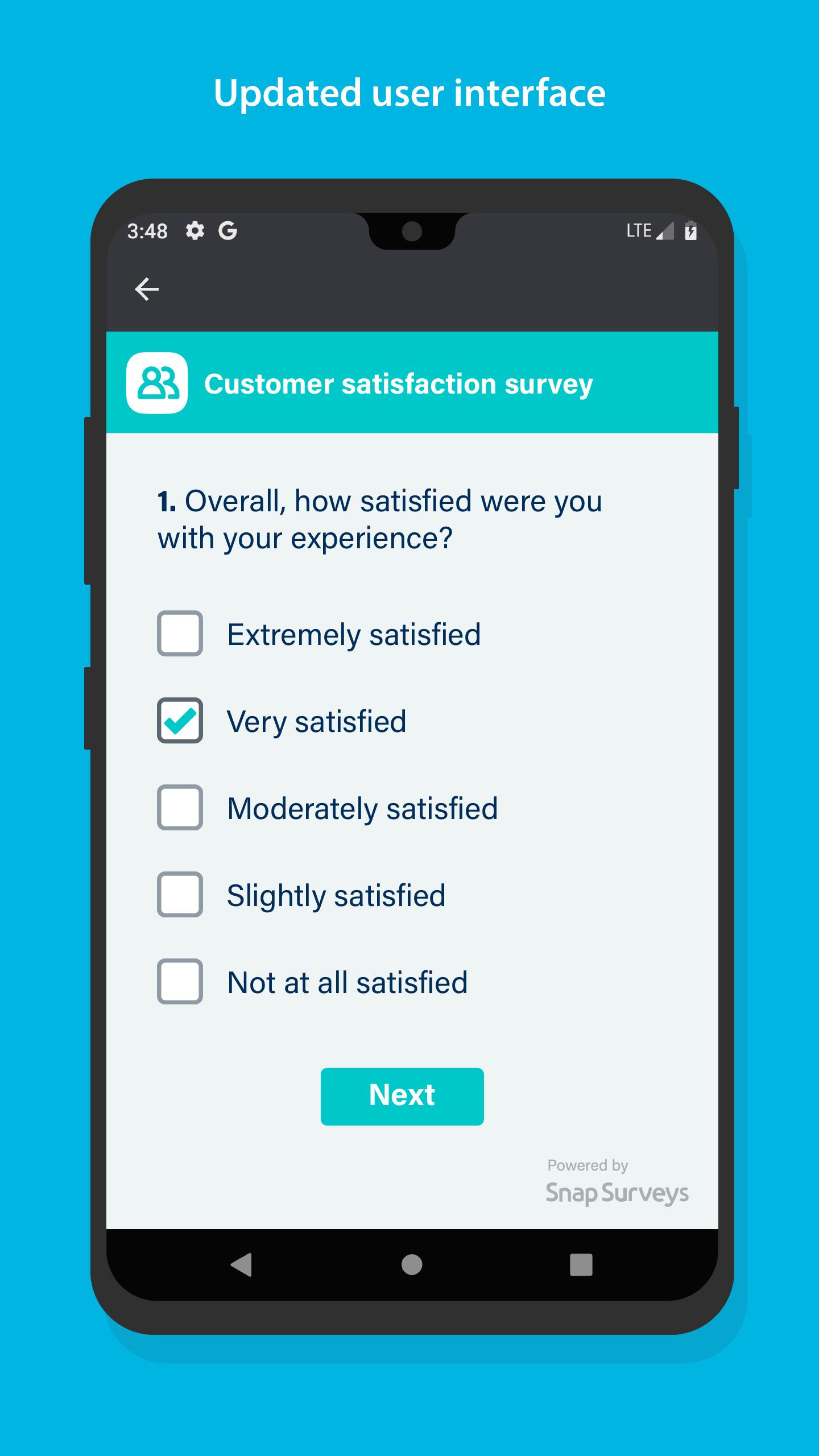 Automatically connects to Snap’s WebHost server to upload completed questionnaires and download the latest surveys. Extensive facilities to help interviewers move seamlessly through a questionnaire, with sliders, routing, text substitution and masking. Surveys can include images as well as text-based questions.