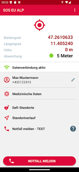 The app "SOS EU ALP" (formerly name "Notfall App") reads your position (x, y coordinates) from your smartphone. In case of an emergency, this position will be used to inform the appropriate rescue coordination centre (Tyrol, South Tyrol or Bavaria).
