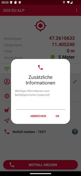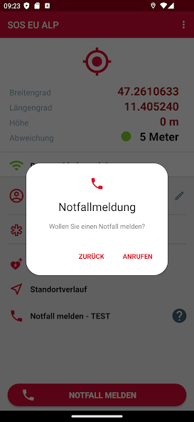 Outside of the borders of Tyrol, South Tyrol and Bavaria emergencies are reported to the appropriate rescue coordination centre too. In such cases the app calls 112 but do not send any data.