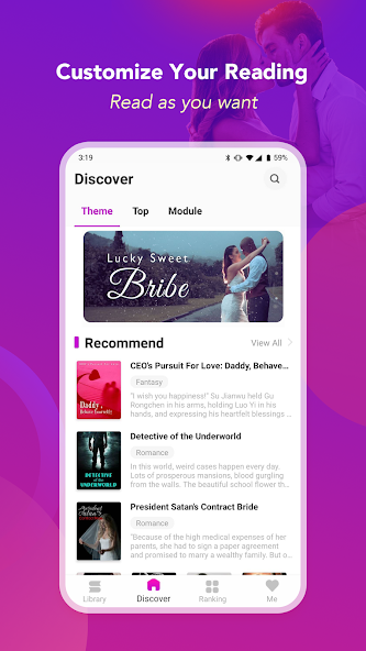 Spark Fiction has many features to cater to your reading preferences. It will provide a variety of menus and pages to help you find your liking, such as Editor's Choice, Hot Genres, New Updating and Popular on spark. Once you start reading, the app will suggest more stories based on the titles you've marked.