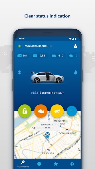 - Receive PUSH messages on any events with your vehicle (alarm, engine started, security mode switched off, etc.)