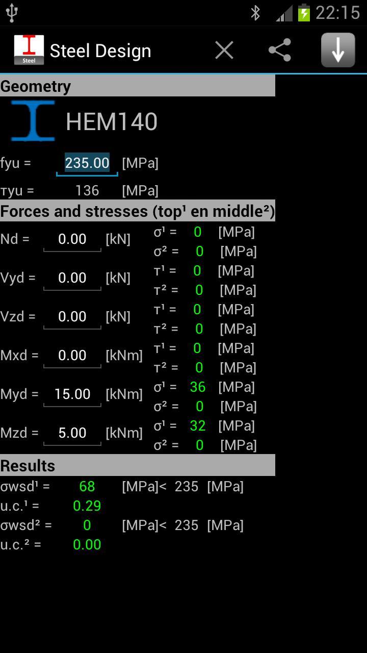 This Steel Design App lets you determine the elastic stresses at the top and in the middle of a beam, given the forces on the beam based on the theory of ‘Huber-Hencky’. Axial force, double shear and