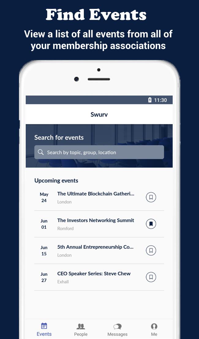Swurv Pro brings together all events, contacts, and communication from all of your membership associations into a single mobile app.