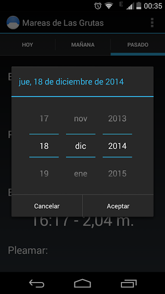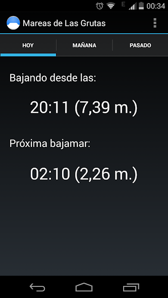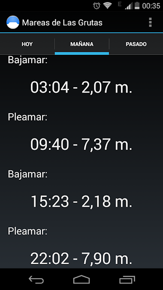 This application allows you to see the high tide / low tide schedule corresponding to Las Grutas Spa, with its respective height information. It has the data of the Naval Hydrography Service until December 31, 2019.