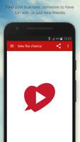 takethechance is an online platform that gives you the perfect chance to find the love of your life, people to have fun with or new friends. With the aid from previous installed settings you are able to look for people with the same interests near your area. In real life you know within the first few seconds if a person is appealing to you or not. The first impression counts! So take the chance and start your search!