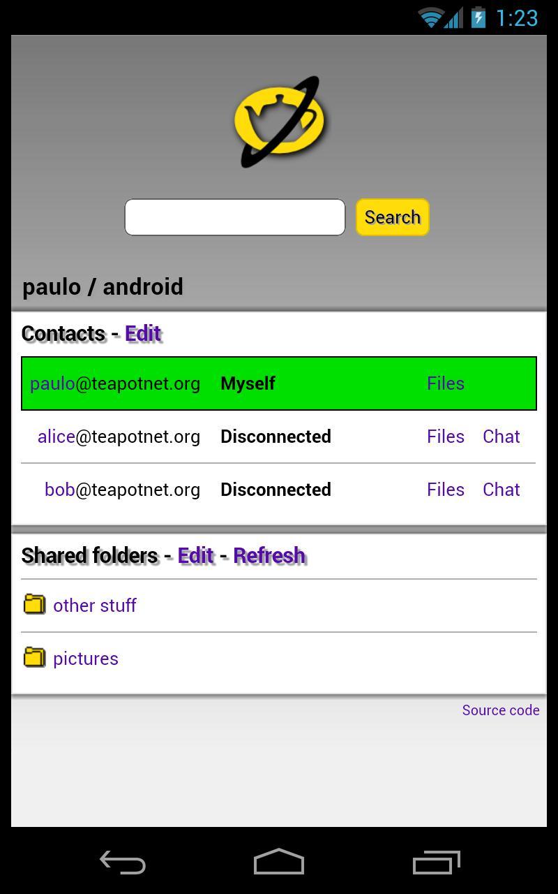 Teapotnet is a free, private and distributed social network designed for file sharing and media streaming. It works like a friend-to-friend network allowing you to chat, and share, download or stream files. For a way better experience, synchronize it with Teapotnet for Microsoft Windows, Mac OS X or GNU/Linux.