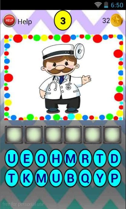 How to play it is very easy, because the way to play is the same as the game of guessing the picture, guessing the logo, guessing who I am, guess the word, or guess the artist. Namely by looking at the pictures that appear and guess by compiling existing letters into words related to the job profession.