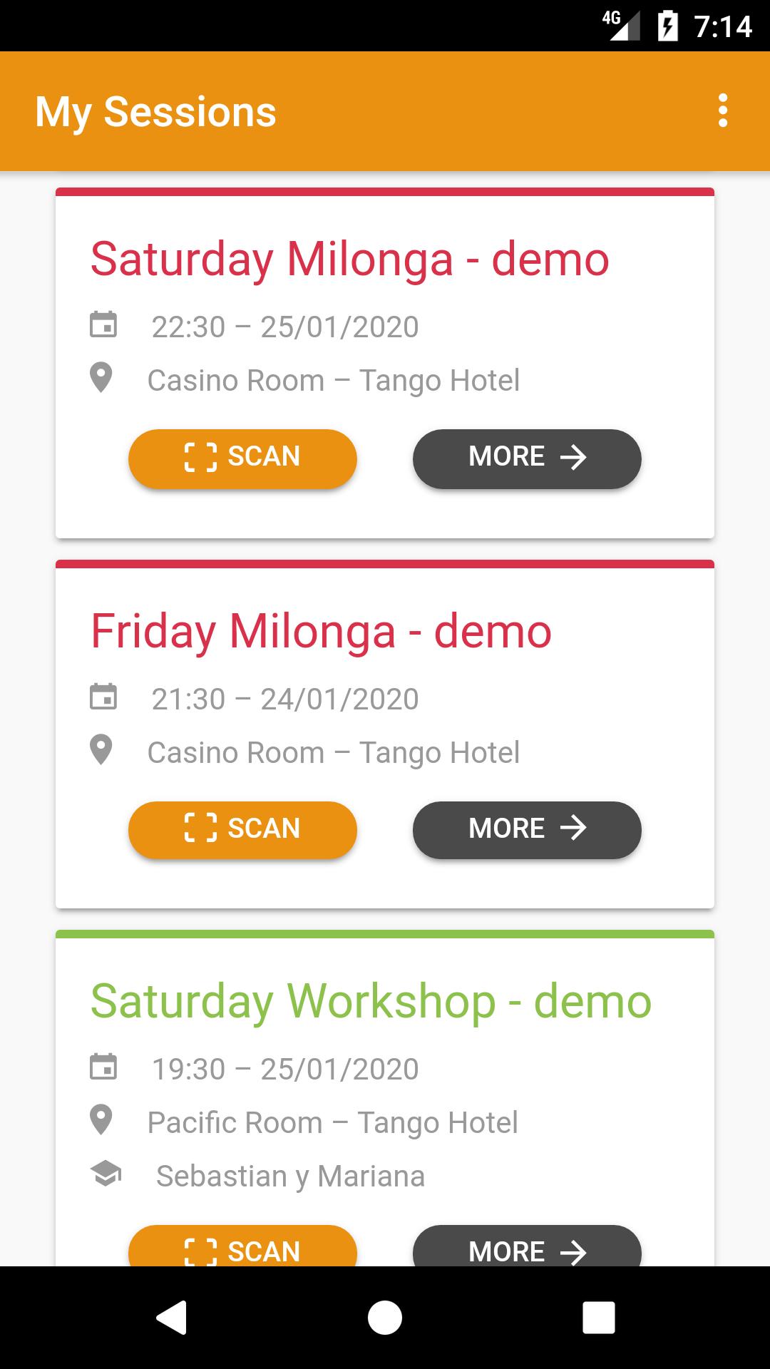 TGPX Pro has been specifically designed for Tango Event Organisers and it is able to automate the attendance control from the simplest Milonga to the most complex Tango Festival with multiple workshops, milongas, etc
