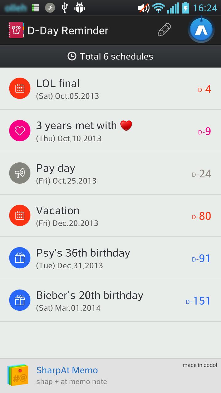 นอกจากนี้เมื่อวันที่เข้ามาใกล้คุณ D-Day Reminder จะเตือนคุณล่วงหน้า คุณจะไม่พลาดวันนี้