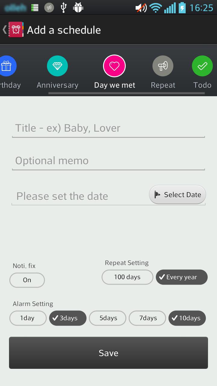 -D-Day พิเศษจาก, (D-Day, วันเกิด, วันครบรอบ, กี่วัน, กิจกรรมที่ทำซ้ำได้, สิ่งที่ต้องทำ)