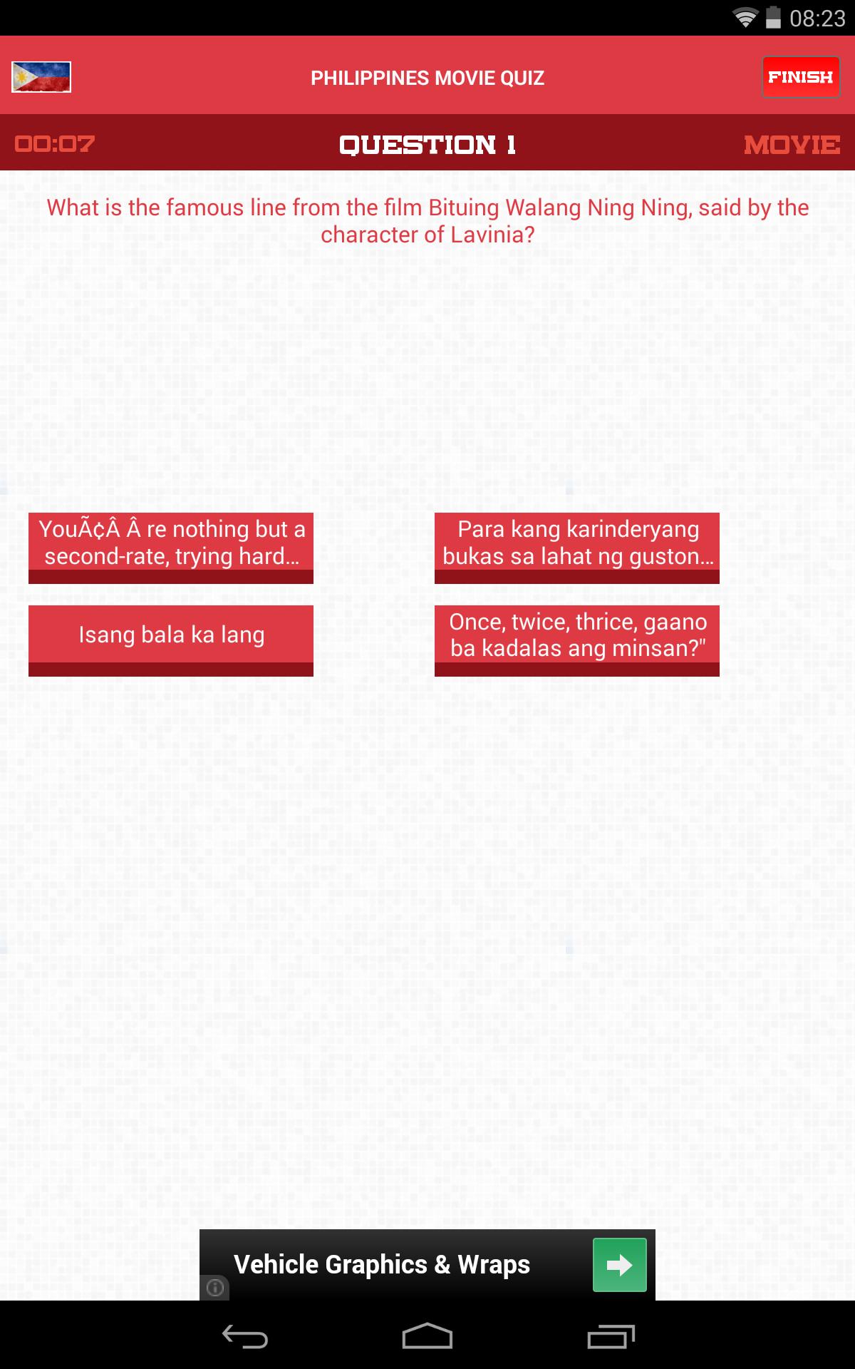 รวมเป็น 3 โหมดเกมให้คุณเลือก โหมด“ โอกาสสุดท้าย” ท้าทายให้คุณตอบคำถามแต่ละข้ออย่างถูกต้องเพื่อให้ได้คำถามต่อไป โหมด“ ความเร็วรอบ” จะทำให้คุณอยู่บนนิ้วเท้าของคุณด้วยคำถามไฟอย่างรวดเร็ว และด้วย“ โหมดทดสอบ” คุณสามารถเลือกจำนวนคำถามที่คุณต้องการและกำหนดเวลา จำกัด สำหรับแบบทดสอบ ลืมชื่อของภาพยนตร์เรื่องนี้เรามีเรื่องไม่สำคัญในภาพยนตร์ป๊อปล่าสุด นี่คือแอพ Quiz Ultimate Movie และ Trivia ภาพยนตร์ Pinoy 2014 ล่าสุดทั้งหมดอยู่ที่นี่ มีคำถามเรื่องไม่สำคัญและคำถามมากมายเพียงแค่ตรวจสอบทั้งหมด มีคำถามเรื่องไม่สำคัญที่คุณคิดว่าหายไปหรือไม่? จากนั้นส่งคำถามเรื่องไม่สำคัญของคุณมาให้เราแล้วเราจะเพิ่มพวกเขา!