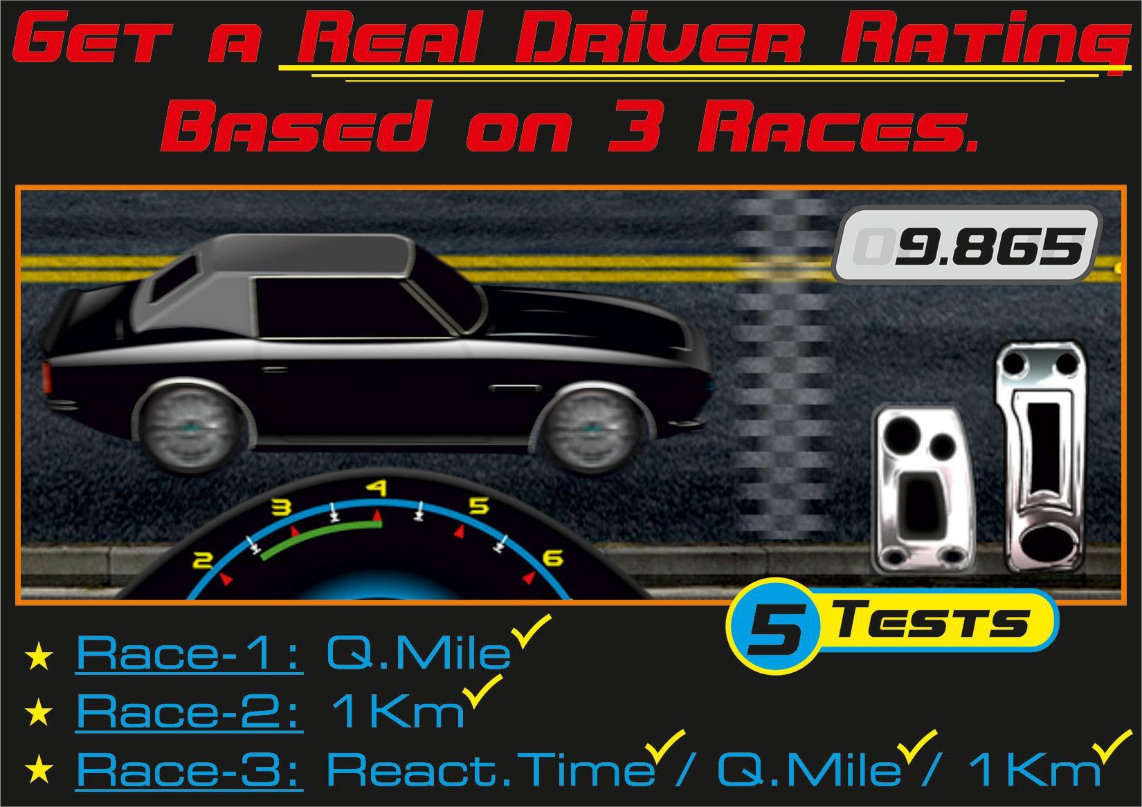 4) การจัดอันดับประสิทธิภาพของไดรเวอร์:- ไม่มีแอพอื่นใดที่ให้โอกาสคุณในการให้คะแนนทักษะการขับขี่ของคุณ ที่นี่คุณจะได้รับการทดสอบใน 3 เผ่าพันธุ์ที่แตกต่างกัน (เพื่อให้แน่ใจว่าไม่มีความบังเอิญ!) ... และ 5 เกณฑ์ที่แตกต่างกัน เช่นเวลาตอบสนองไตรมาสไมล์ & 1 กม. หลังจากนั้นและเห็นประสิทธิภาพของคุณคุณจะได้รับคะแนนจากการคำนวณที่คล้ายกันที่ใช้ในการคำนวณคะแนน ELO ของผู้เล่นในหมากรุก!