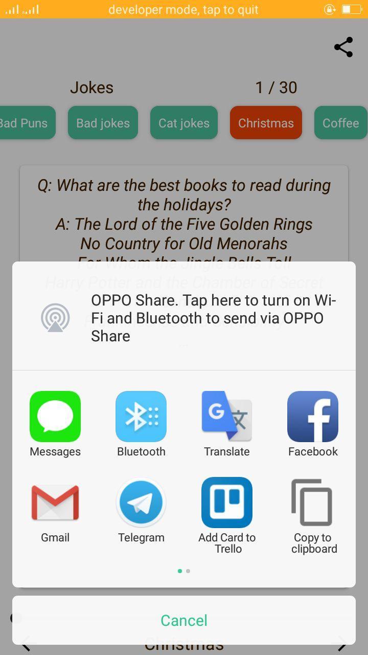 คุณสามารถเพิ่มเรื่องตลกหรือรายการโปรดเพิ่มลงในคลิปบอร์ดส่งไปยัง SMS, Vkontakte, เพื่อนร่วมชั้น ฯลฯ (แอปพลิเคชันใด ๆ ที่ติดตั้งบนโทรศัพท์ที่รับข้อความ)