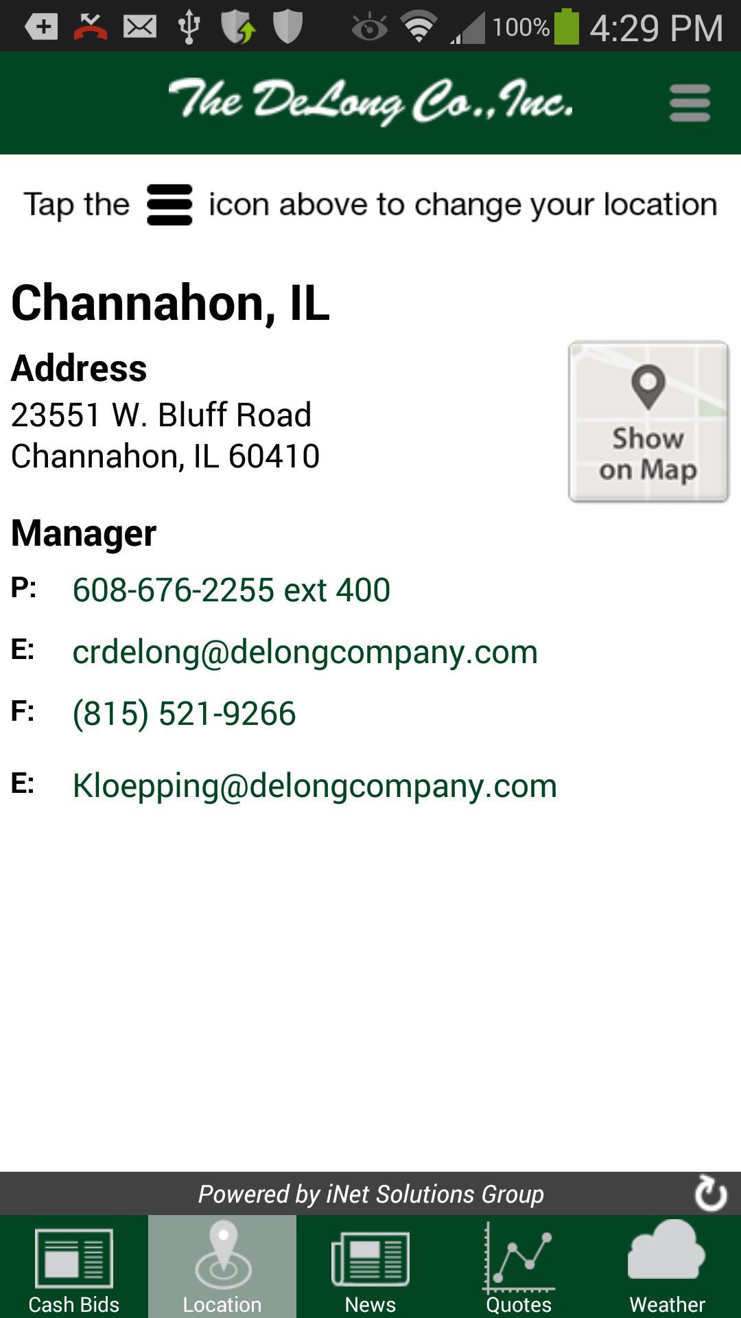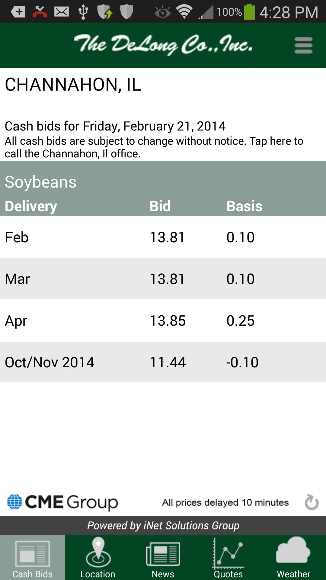 The DeLong Co app provides current bids, markets, weather and commentary.