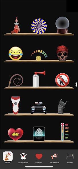 More than 50 different prank tools and funny things (razor prank, whip prank, funny sound effects, scary pranks, clipper, fart, air horn sounds and many more) combined in one app.