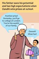 The life of Gandhi is told in an illustrated story format.