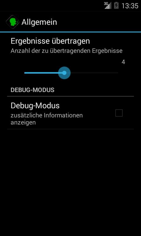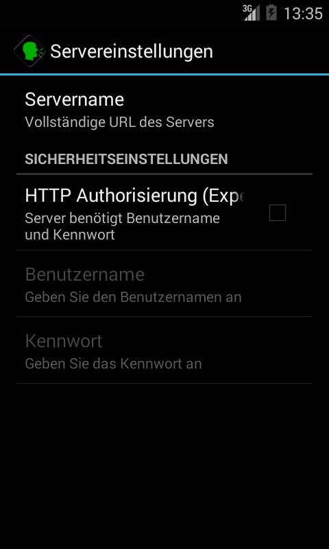 The address of the server must be entered in the settings before use. The spoken sentence is transmitted to this URL as a parameter X0, X1, X2, etc. Several (up to eight) recognized alternatives (adjustable) are transmitted.