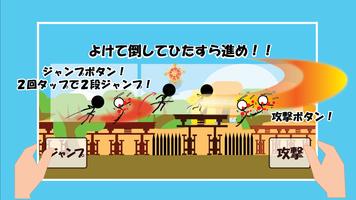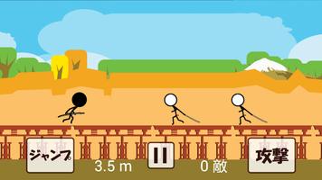 Jump by tapping the left button, and attack by tapping the right button. Double jump if you tap the left button during the stickman in the air!