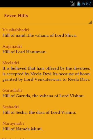 "Thirumala Venkateswara Swamy" application will give info about Thirumala.It provides information on available Sevas, Darshan, Bramhotsavams and Near by places in Thirumala and Thirupathi.