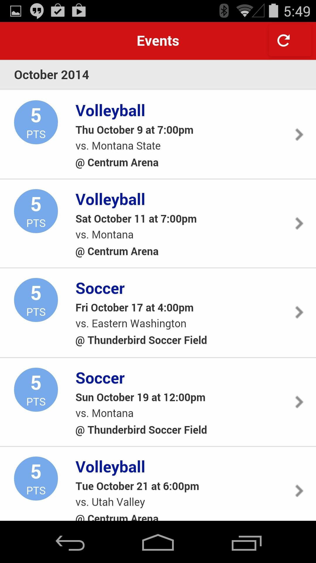 + Stay up-to-date with a consolidated schedule listing event dates, game times, & point values