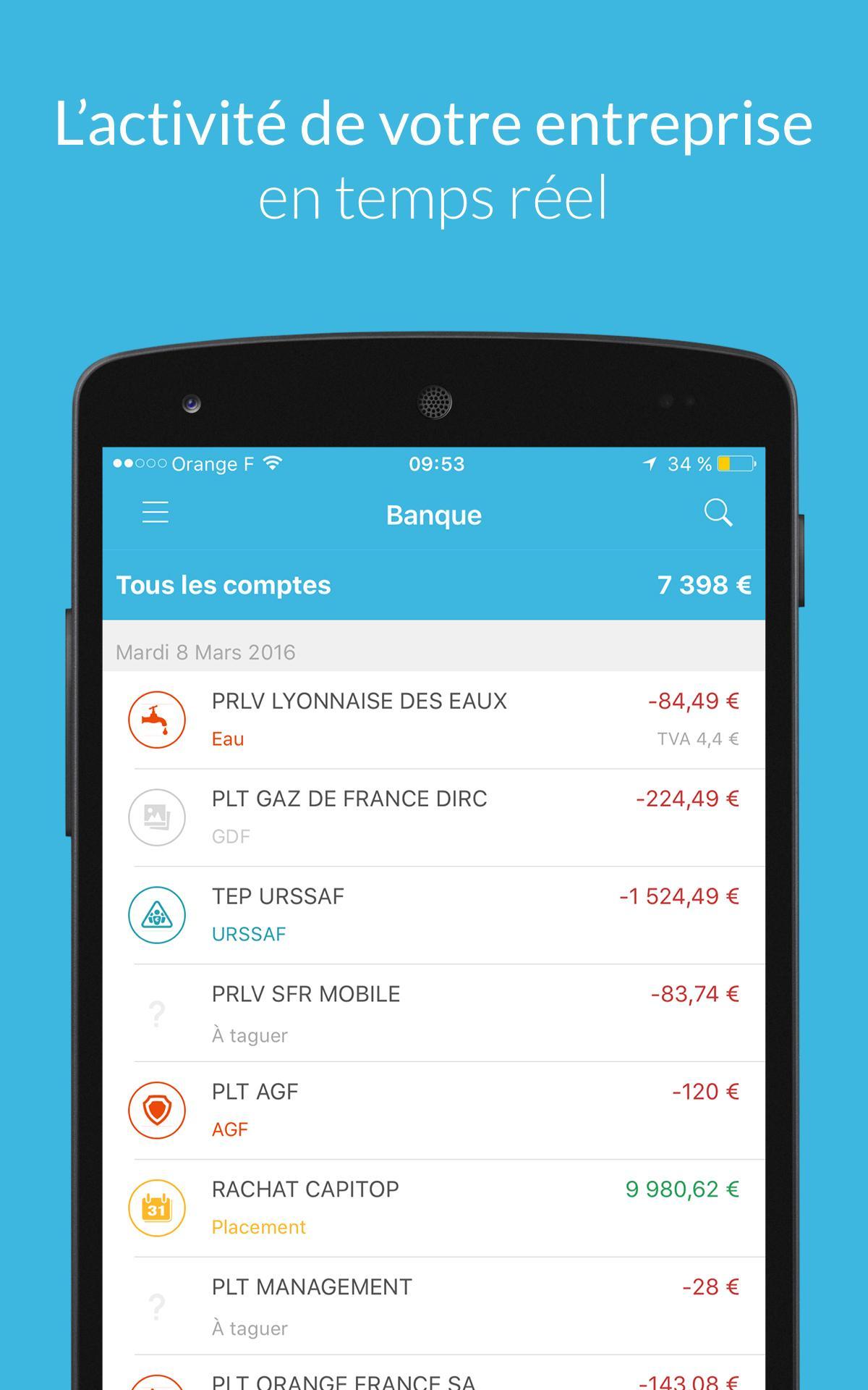 The "My Info" screen (which brings together some key information from your company like your SIRET) slides at the bottom of the menu.
