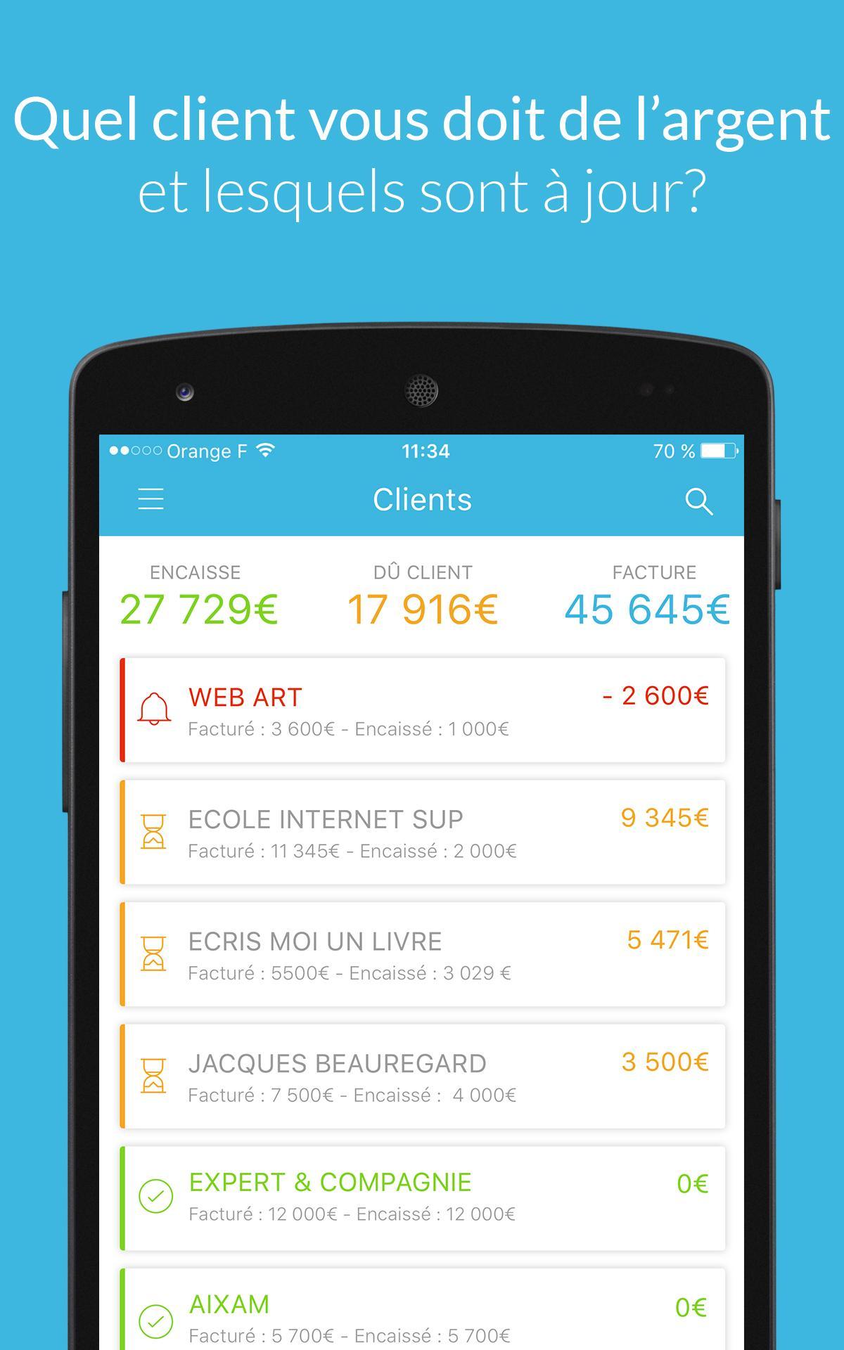 Find a summary of your customers who owe you money, then those who have a credit balance, and finally those who are up to date on the "Customers" screen in the main menu
