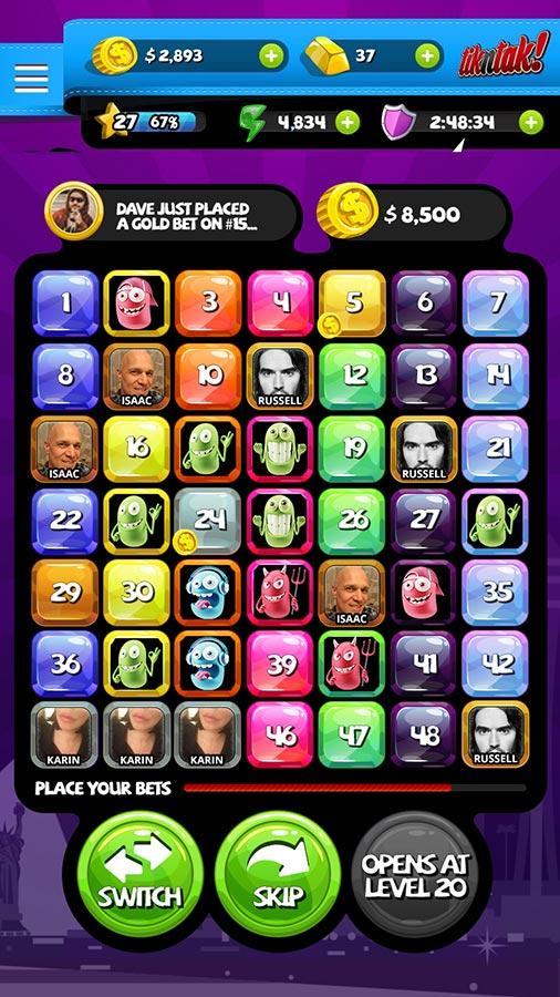 Tikntak is a combination of casino slot machine, casino roulette, bingo games free to play. All free games combined into one super exciting new casino game including unique features and special power-ups helping you to fight other players winning the jackpot.