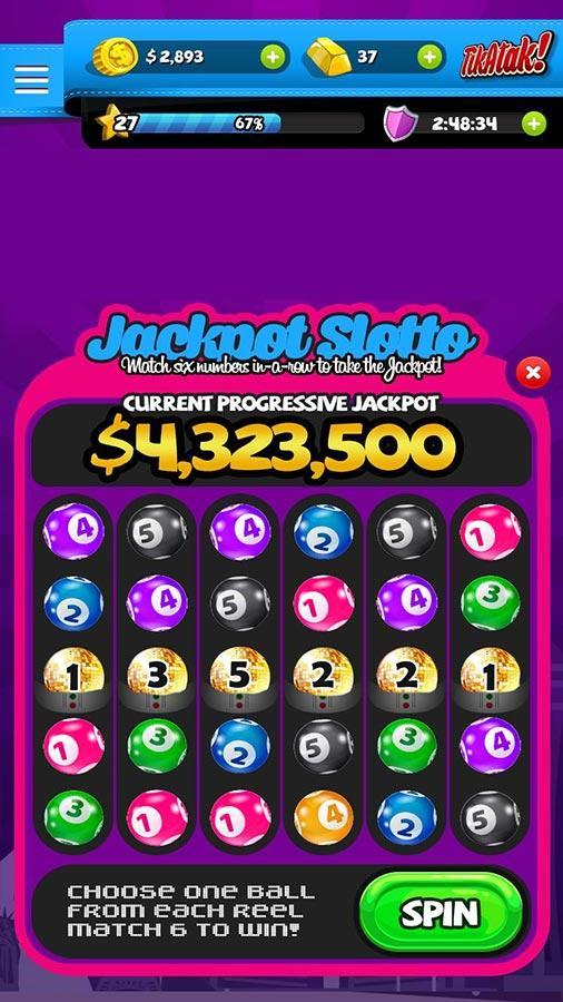 In addition to casino Tikntak free casino game you can win the Super Mega Jackpot with Jackpot Slotto free casino slot games.