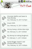 TnT-Cook Blog app lets you read TnT-Cook's cooking blog from TnT-Cook.com . TnT-Cook Blog postings are about cooking your everydays normal recipies with a personal touch.Working to make app better with more feathers. (search, Facebook Fan Page, etc)