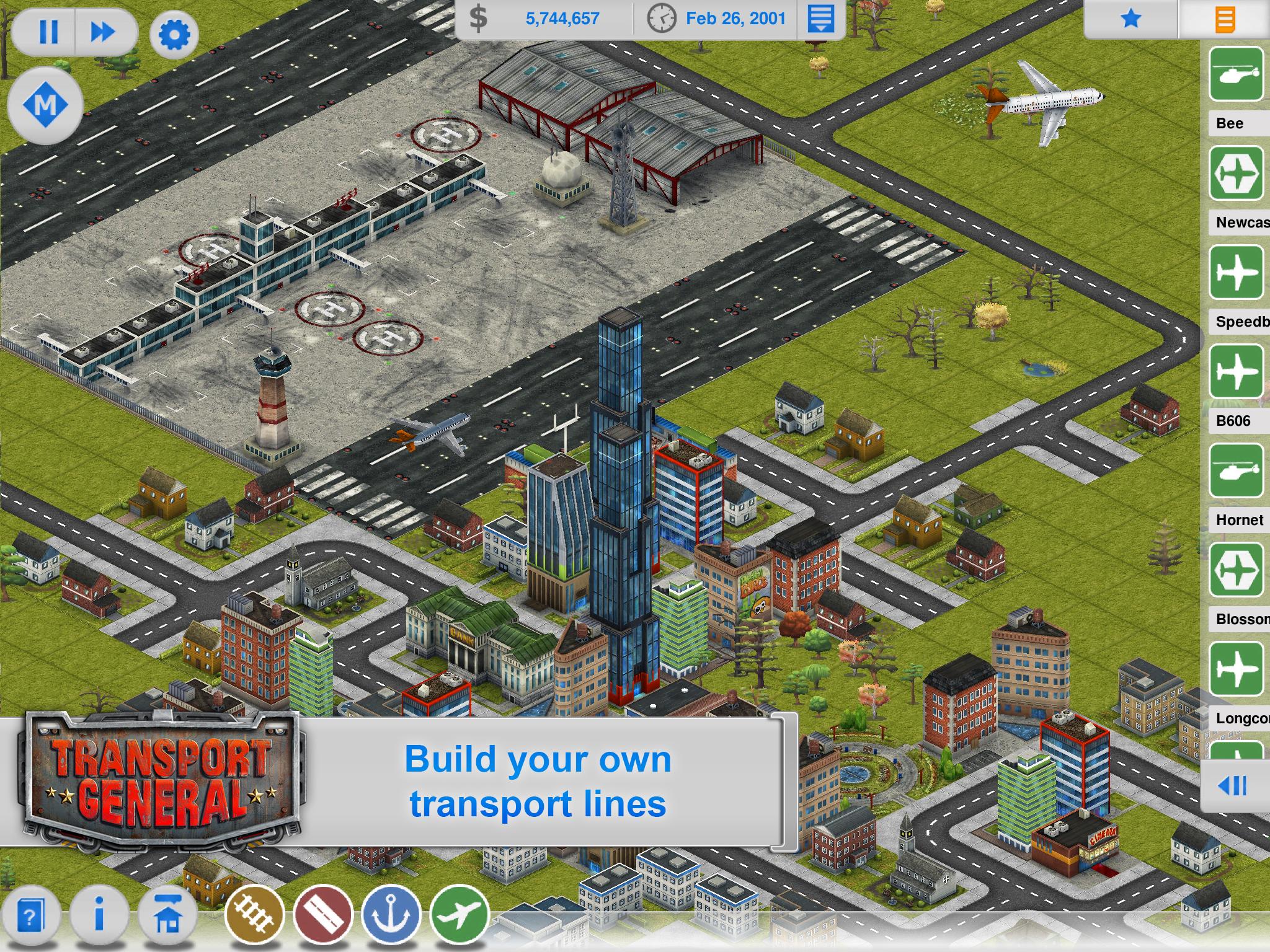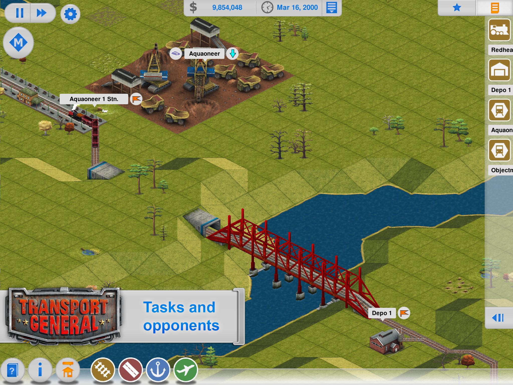 The objective of the game is to establish a multitude of road networks, by the use of which all raw materials, products, people may be transported to the proper location in the appropriate time and in the most efficient way possible. Use trains, buses, airplanes, helicopters, or ships, to be able to satisfy the expected demand! Modernize your vehicles in a timely fashion, to be able to keep up with technological advancement, and pay attention to changes of demand!