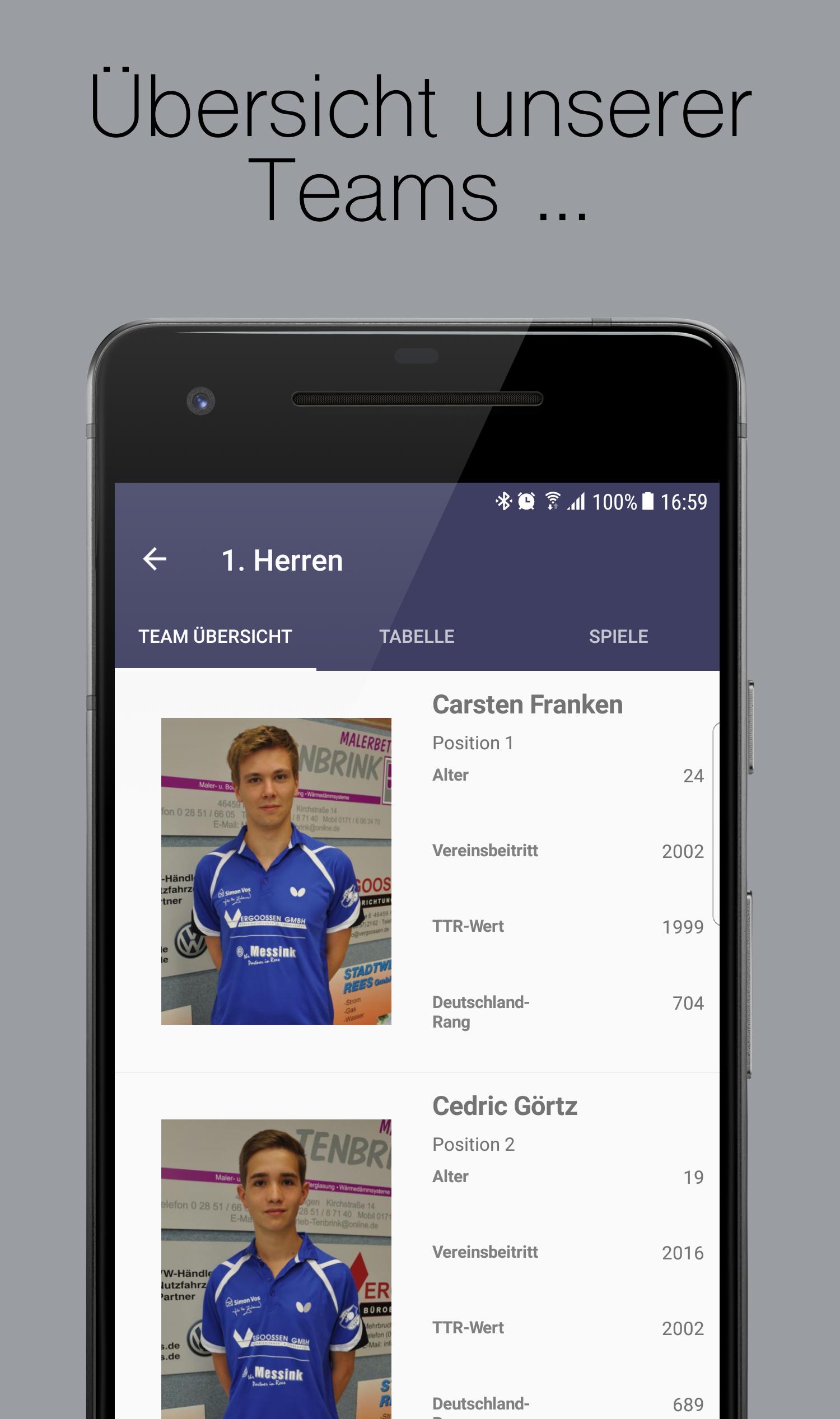 This is the official app of the TTV Rees-Groin . You will experience the latest news, appointments, results quickly and easily. Here you get an overview of the teams, the table status or the upcoming games. And via the ticker function you are live in all games.