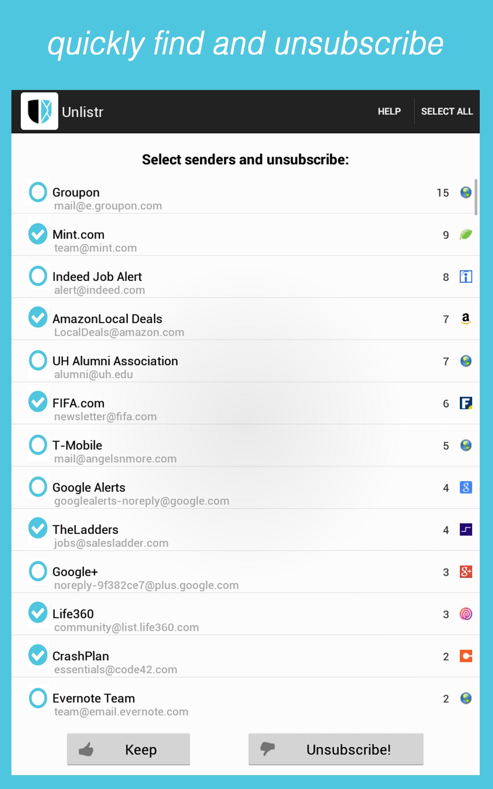 "Not only has Unlistr helped me eliminate unnecessary emails, but I found the process quick and easy to setup." ~AppAdvice.com