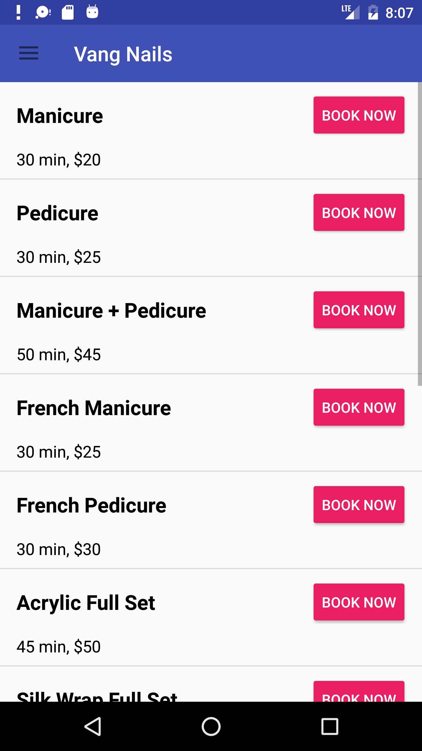 Demo custom branded app for a full service nail salon & spa by Schedule Anyone