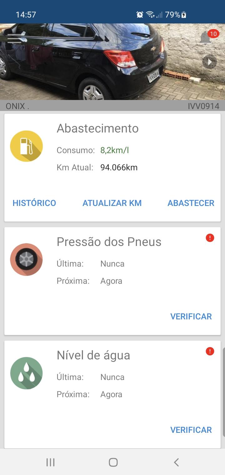 You may be reminded of regularly checking the oil level, calibration Tires and water level. The app stores the last check, and notify the date of the next check, keeping your vehicle always up with the basics of maintenance.