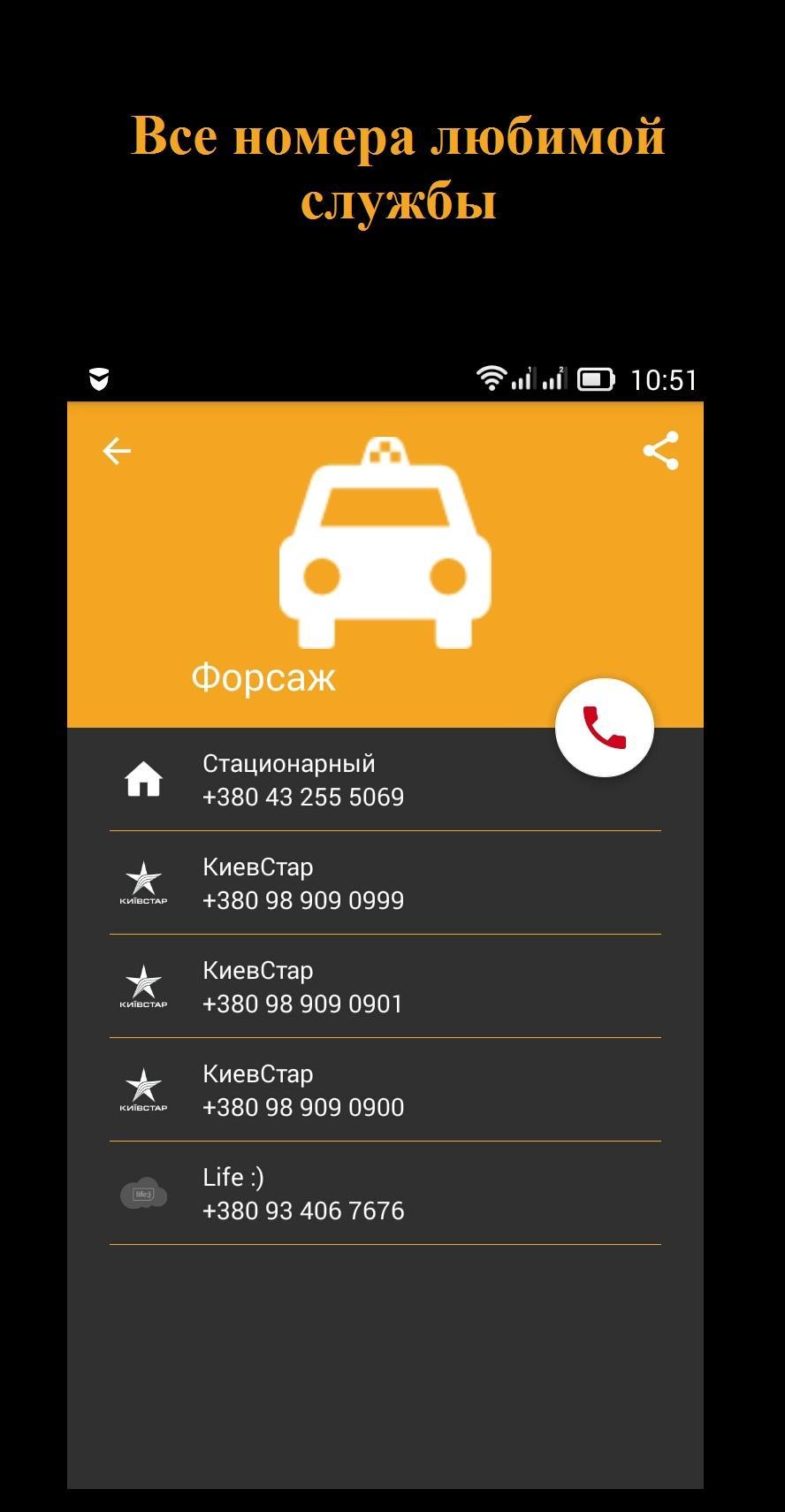 We are glad to present you an application in which there is all a taxi of your city! Only 2 clicks and taxis are filed.