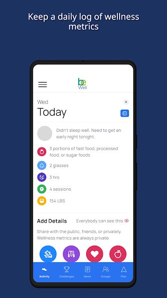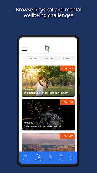 - Check your competitions & teams, join step and wellness challenges, create a personalized wellbeing plan and access daily content , convert activities to steps, and participate in discussions.