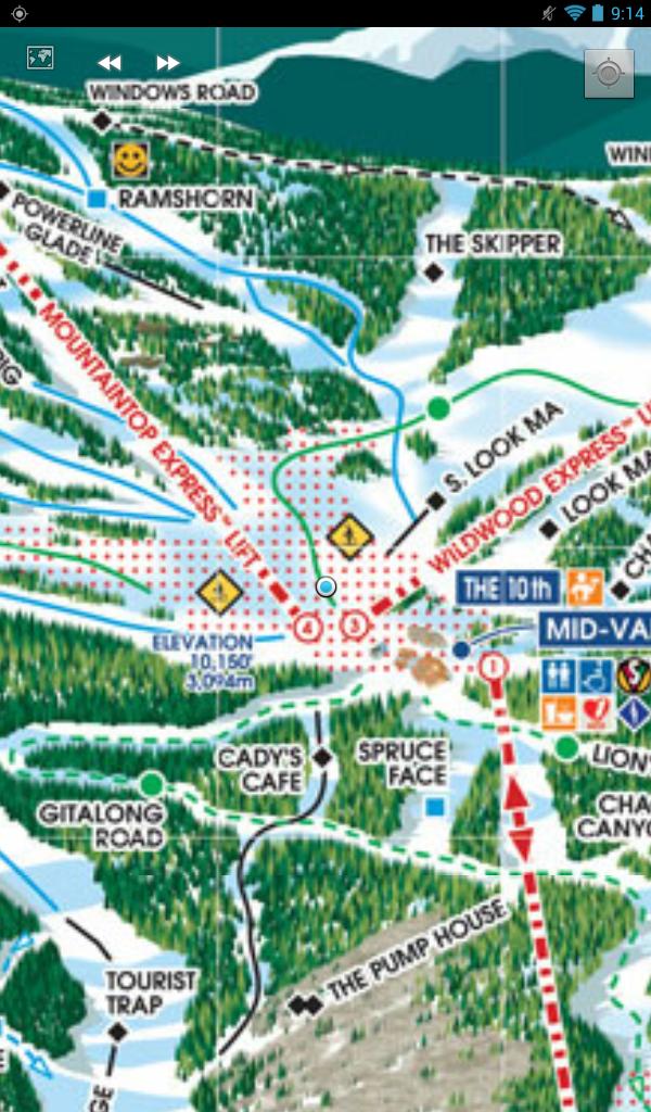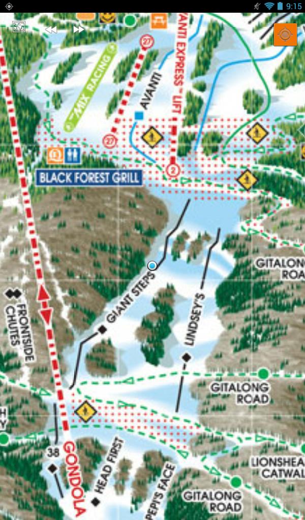 With "resort map mode", we transfer your current latitude/longitude location into X/Y positions of the image map that Vail Ski Resort resort provides. You can have better understand where you are on the ski trails.