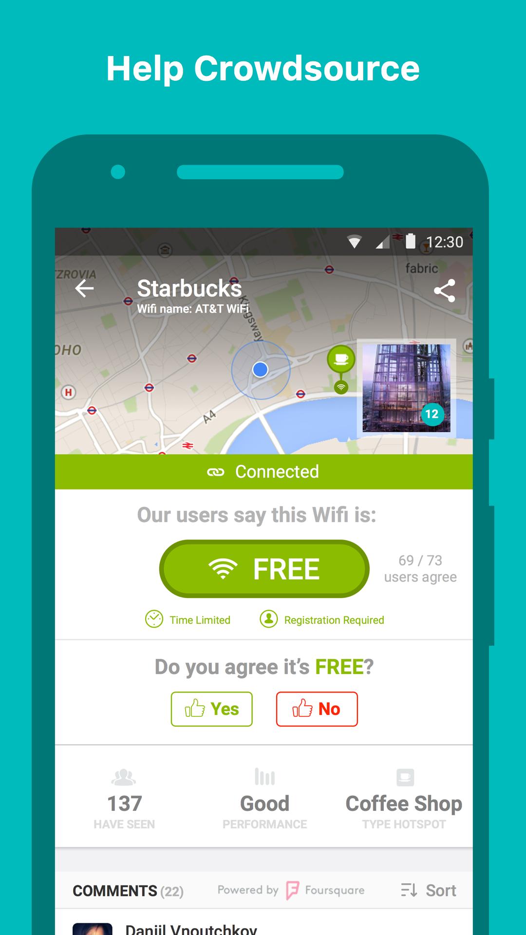 ✓ Foursquare and WifiMapper comments - get more information about the hotspot venue