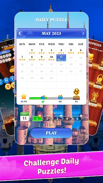In Word Town, there are numerous challenging puzzles to sharpen your mind! Solving puzzles along the journey to different cities around the world will double your fun! Moreover, competing with friends and family members in this game would strengthen your associations!