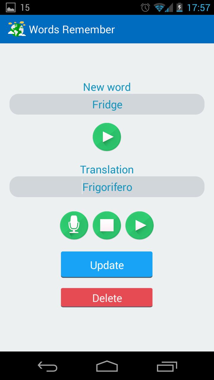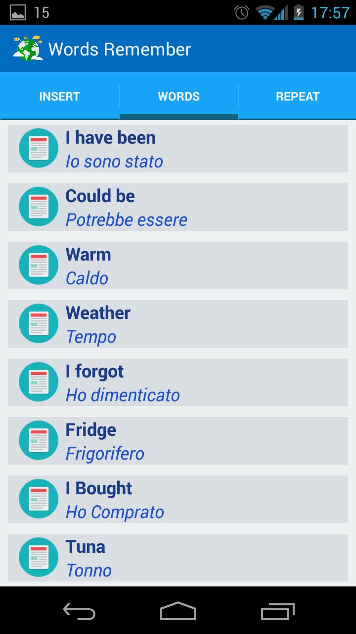 Words Remember is a smartphone and tablet app to memorise and learn the words of another language. You can type your vocabulary or favourite expressions into the app and play our memory game to learn and memorise them whenever you want.