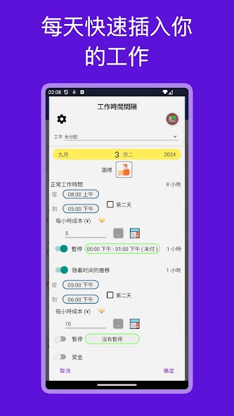 Multiple Jobs: Add how many jobs do you want with different colors and notes and distinguish the events into the calendar At a glance!