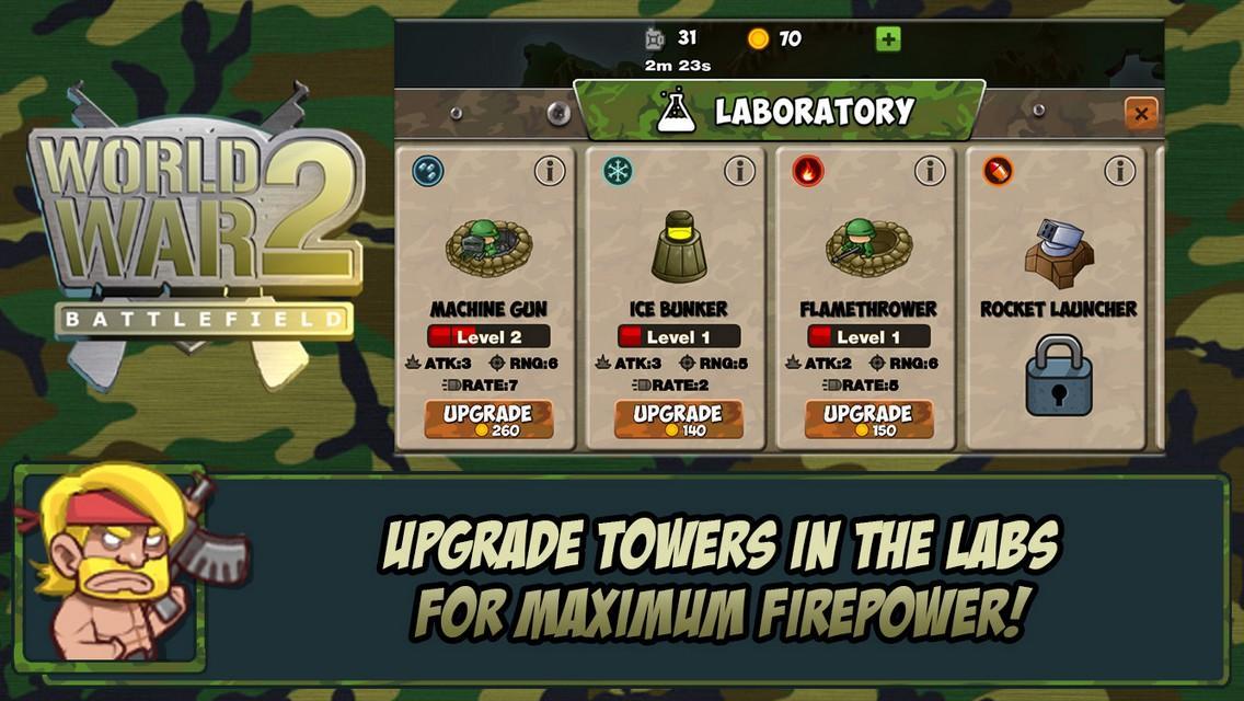 Each tower must built in the right area, because your strategy will have a big impact to the result, a good strategy will guarantee you a victory. When the condition going bad or uncontrollable, you can call the back up squad by push the “missile” or “thunderbolt” button. Buumm! Instant kill! The Germany axis army come in various squad form combination like : land troop, air squadron, and water troop. When one enemy troop can pass through your defense, you will lose one of your heart bar.