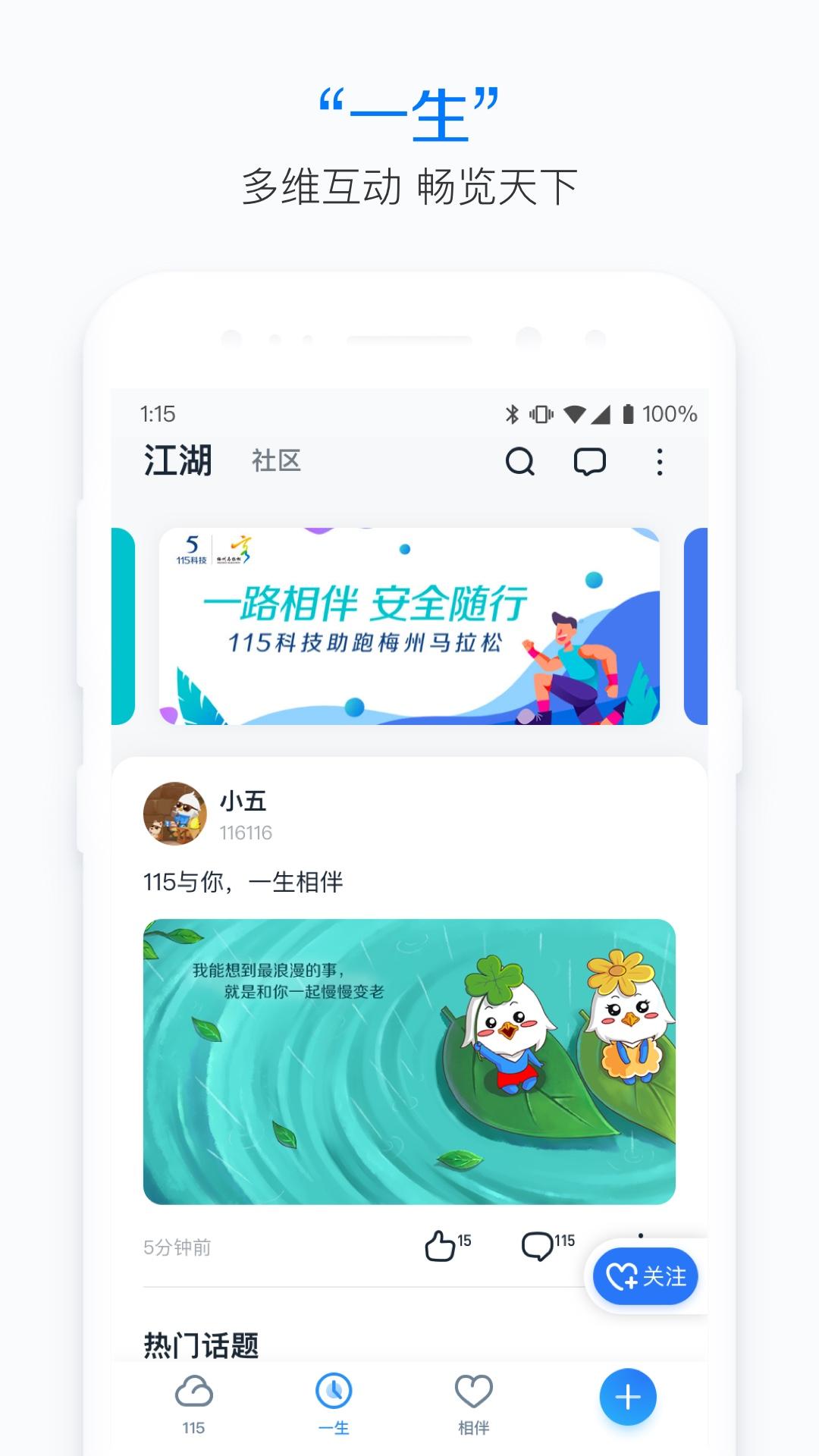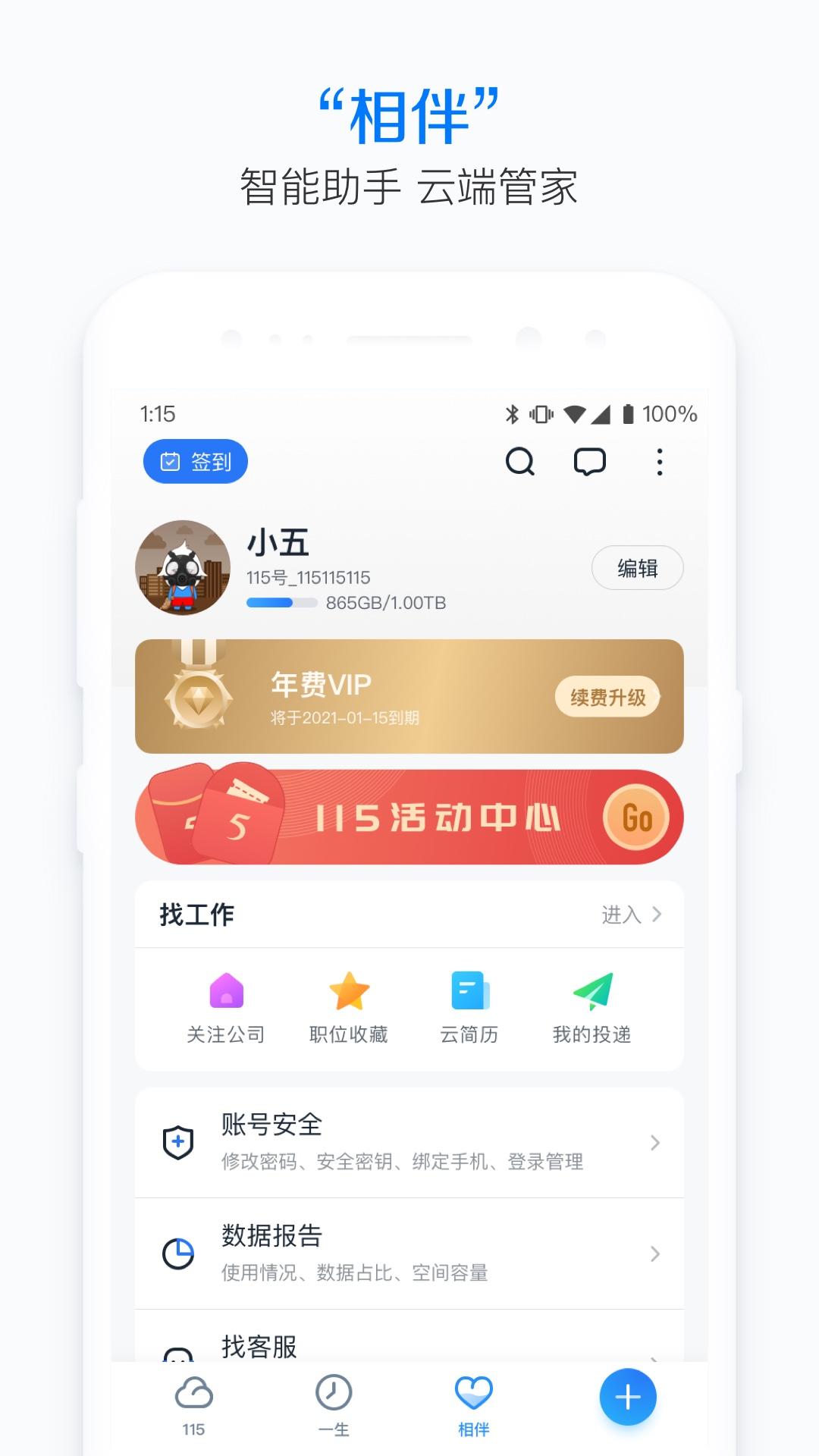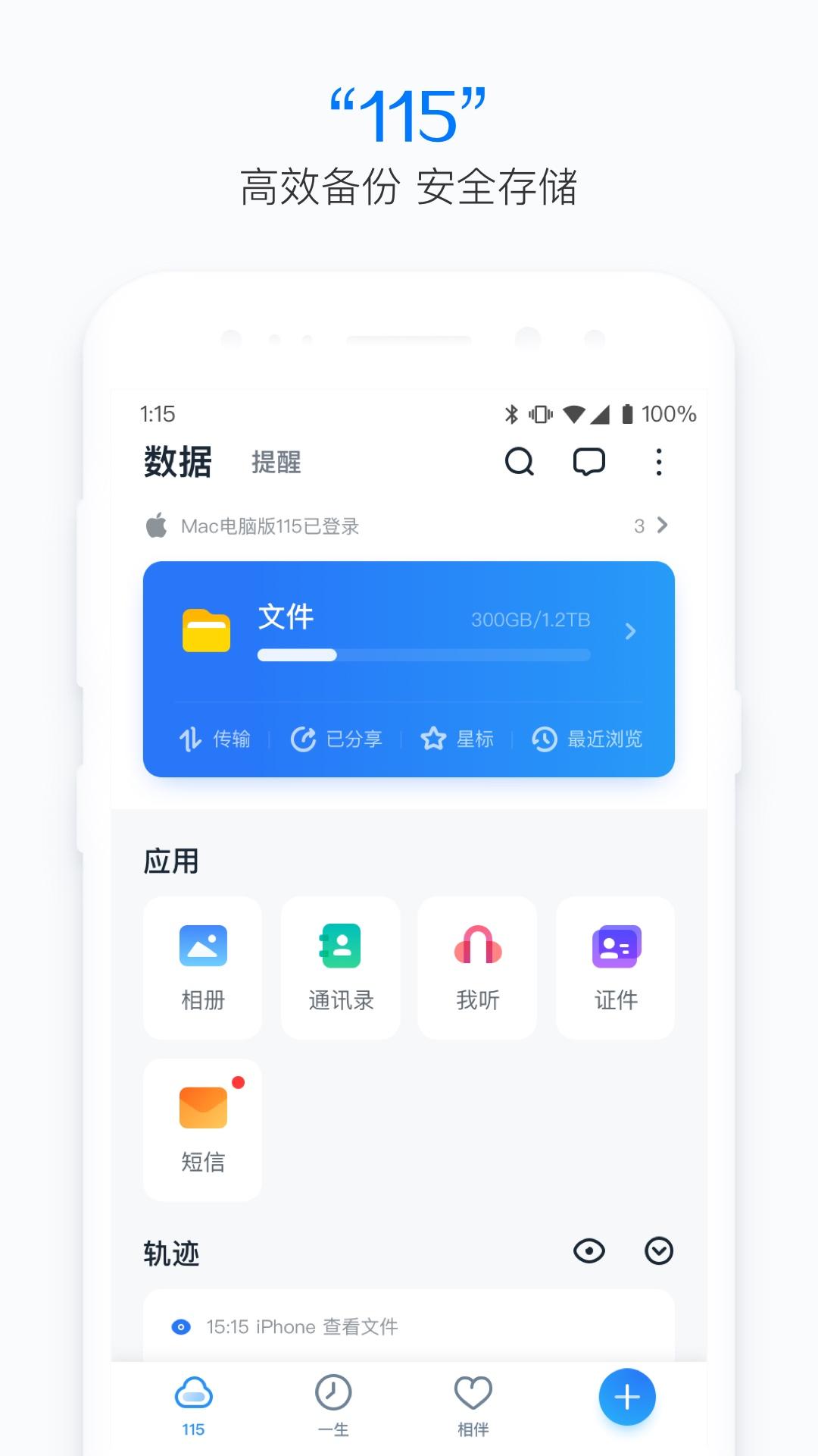 “115”是国内较早一批上线的云存储项目,历经10多年发展已成为以存储、社交、记录为纽带,承载用户一生数据的产品,是一款功能强大、能陪伴用户整个生命周期的智能管理工具。