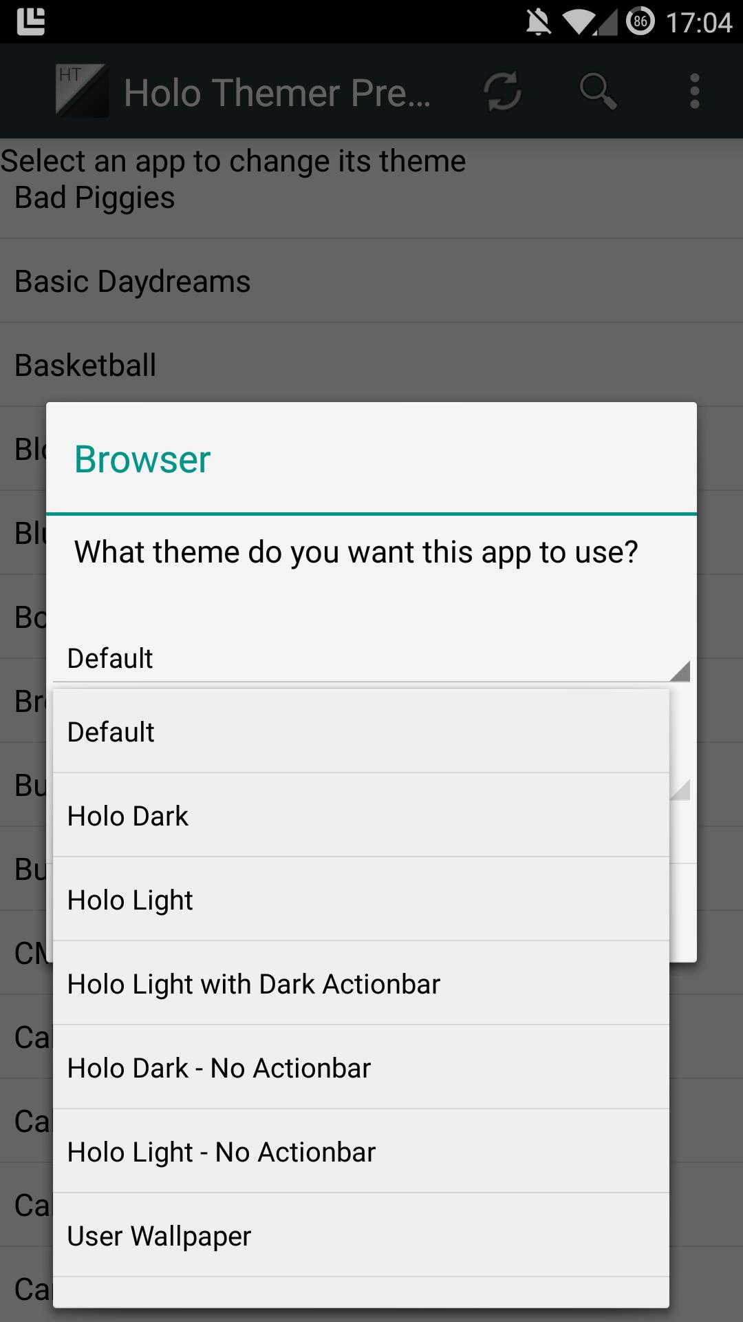 Holo Themer可让您强迫任何应用程序使用: