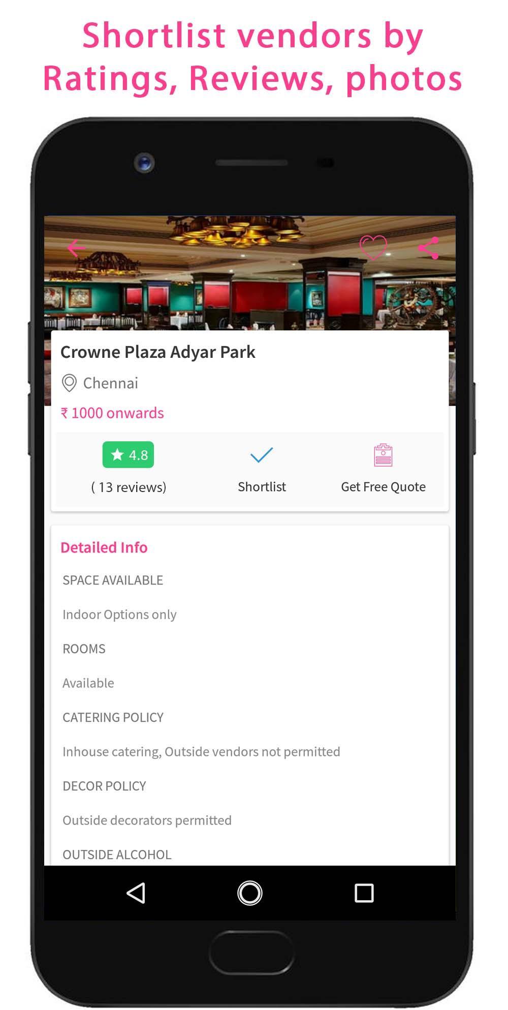 管理和计划您的婚礼,从摄影师到化妆师,迎合装饰的想法。检查供应商列表,提供餐饮,装饰和婚礼化妆。此婚礼策划师的应用程序可帮助您为婚礼场合制作适当的预算飞机。