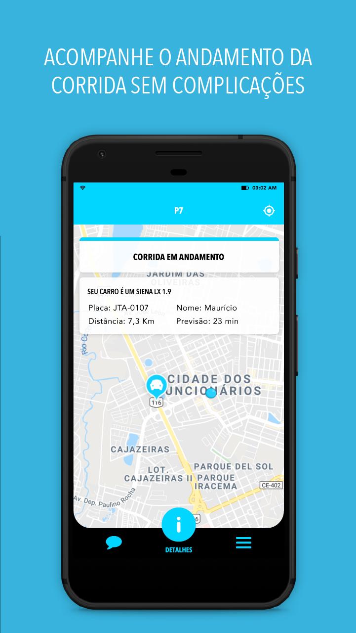 我们的应用程序允许您打电话给我们的一辆车辆并在地图上跟踪汽车的机芯,并在门前通知。