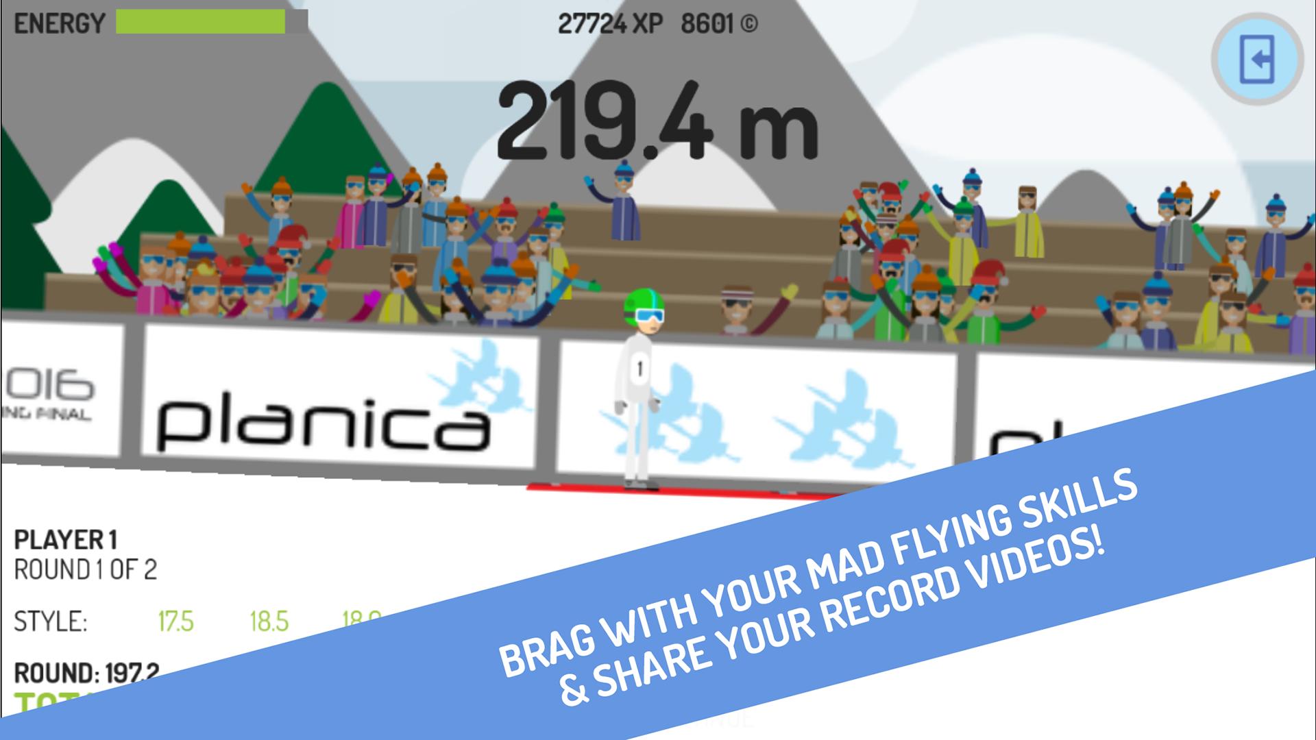 从坡道上释放,时间跳跃,调整在空中的位置并降落跳线 - 仅用一根手指!创纪录的跳跃和全球排行榜荣耀需要稳定的神经和手,因为Planica Ski Flying很容易拾取,但很难掌握!