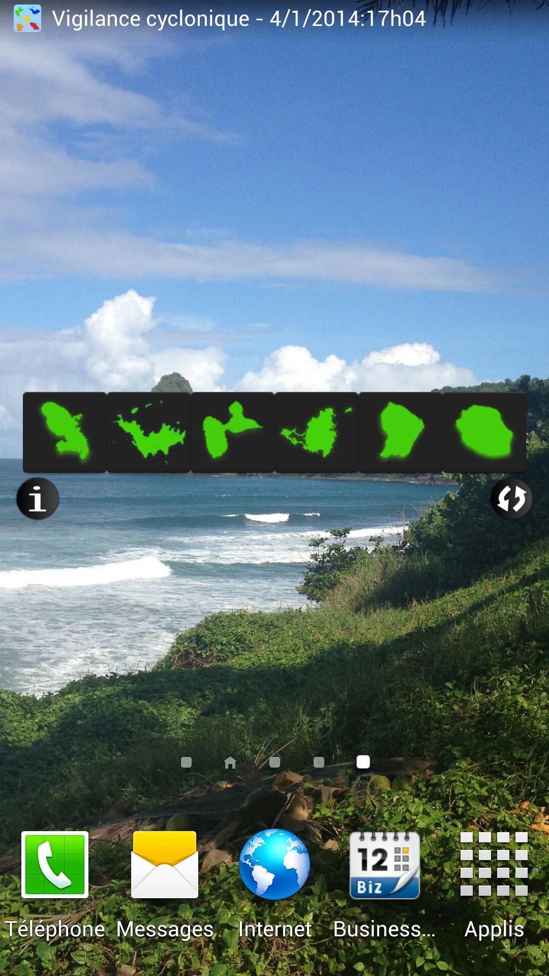 这个小部件使您可以对马提尼克岛,圭亚那,圣马丁,团圆,圣巴塞利米和瓜德罗普进行气旋警惕。