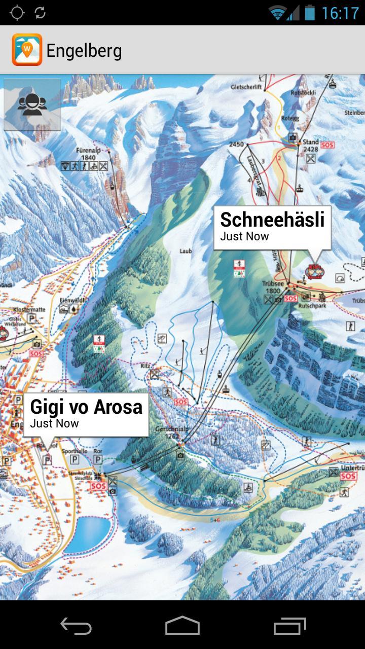 在斜坡上找到您的朋友和家人,或者在雪棒上与Wobish一起找到您在滑雪地图上的位置以及团队的其余部分所在的位置。
